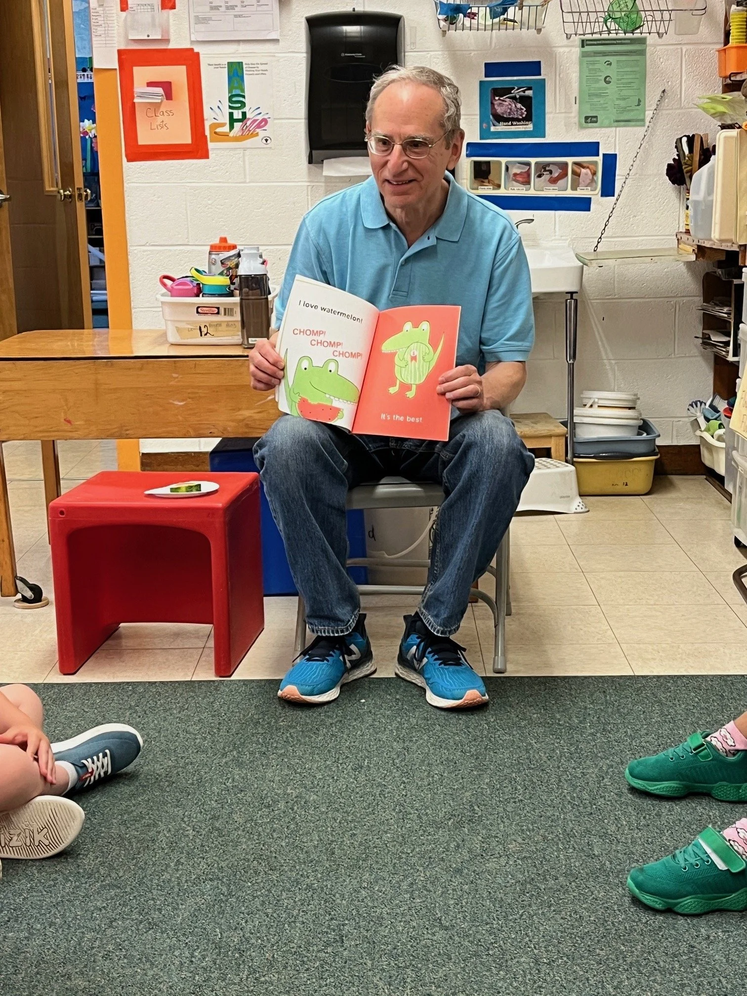 We all enjoyed the parents and grandmothers who visited our class to read a book. We were treated on Wednesday when Mr. Levine was our special guest reader. He arrived in time to eat our pizza snack with the boys and girls, read a story, and then join us for our Movement Class. I had to keep from laughing as he followed along and it was fun to watch the children keeping an eye on him to make sure he did all the movements correctly.