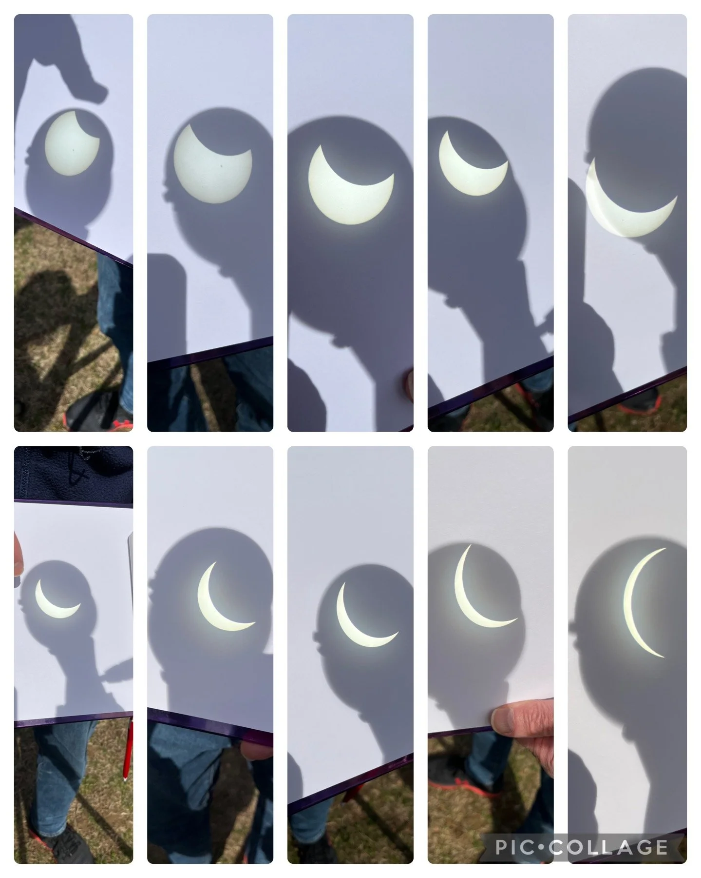 I hope you were able to enjoy the eclipse on Monday. Even though we were not in an area of totality, my husband and I had a fun time on the lawn at the Lexington Community Center. My husband (a retired astronomer) focused the image through our birding telescope onto paper. It was another way to view the eclipse. This is what it looked like: