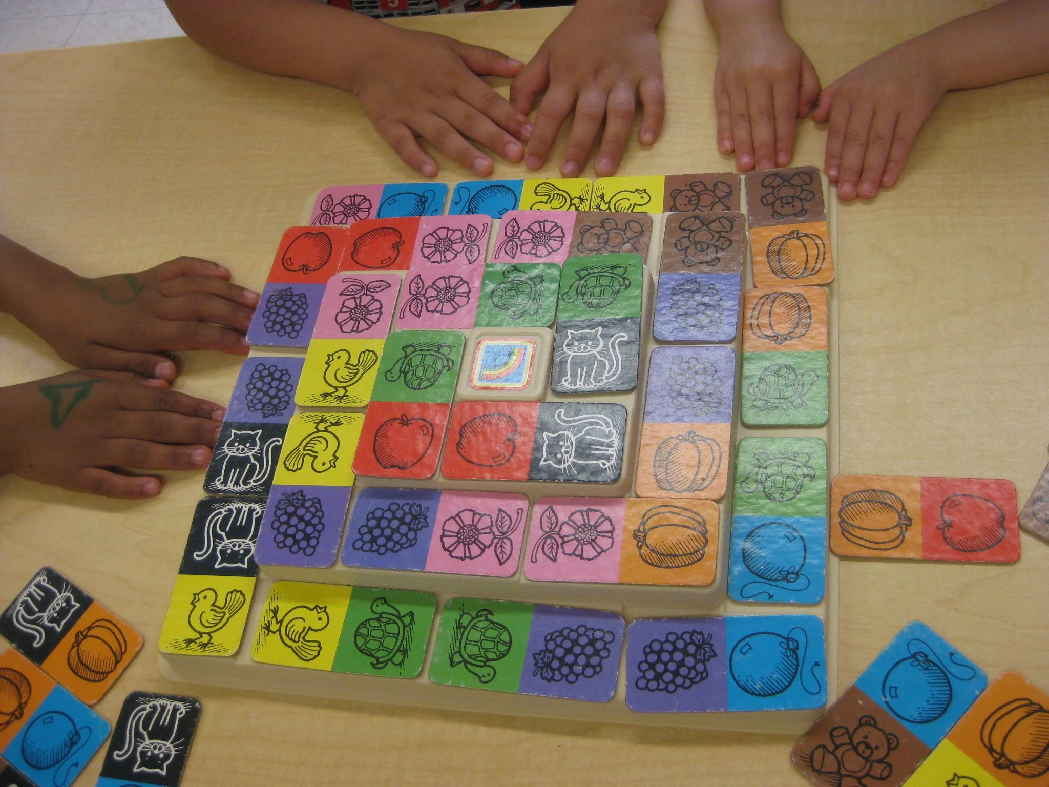 Our small Friday group enjoys having ‘game day’ each week. Here they have finished this matching game, placing the cards around the game board.